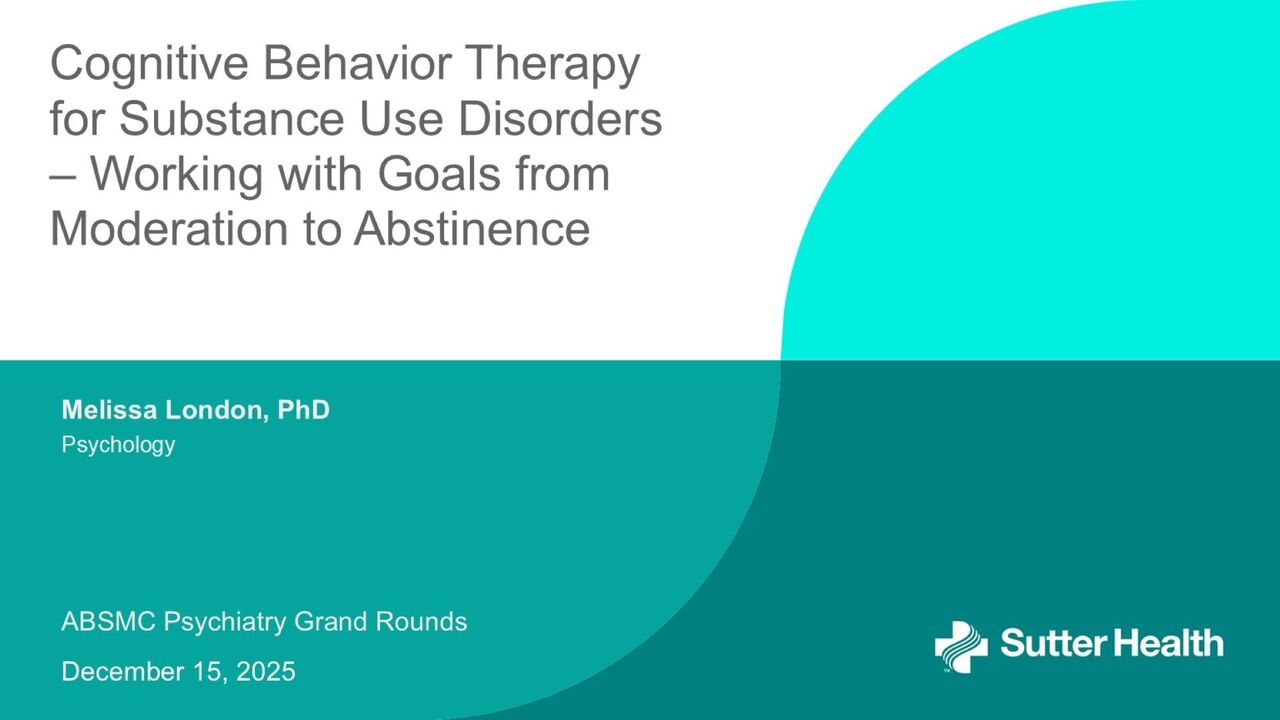 ABSMC Psychiatry Grand Rounds presented by Melissa London, PhD on December 15, 2025.